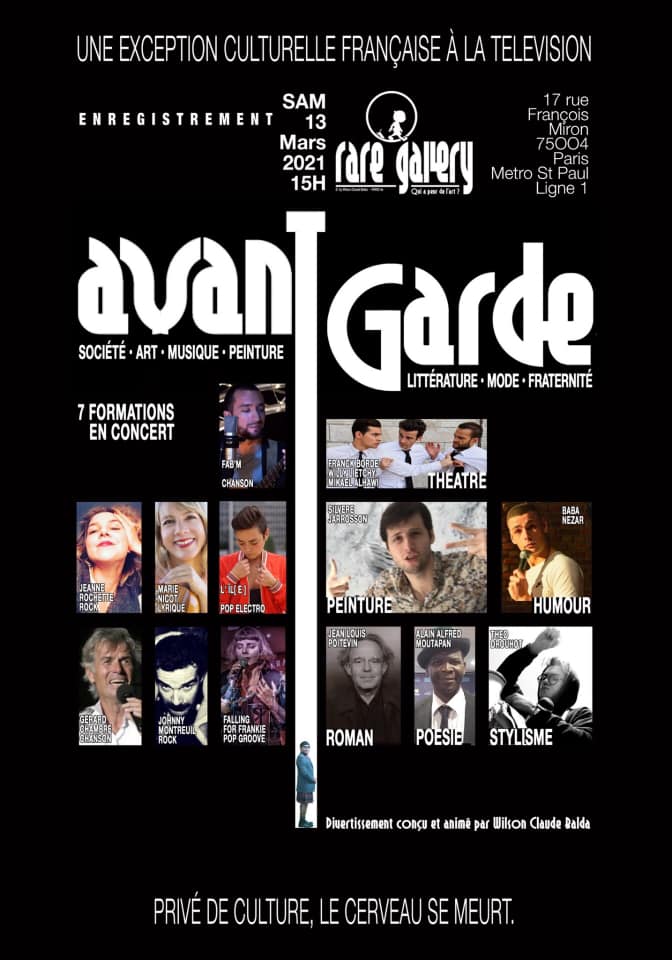 Samedi 13 mars, accompagné de mon pianiste Bastien Leroy, j’enregistrerai l’émission Avant-Garde diffusée sur la web tv Bastille TV, présentée par le producteur de musique et animateur TV Wilson Claude Balda.